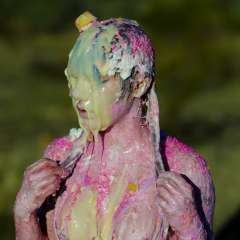 MessyLady_v2 got rubbed down on an inflatable covered with custard by Chuck M