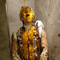 Pieman Si was surprised by Hikari-Studio-Wam with a big sloppy cream pie to the face